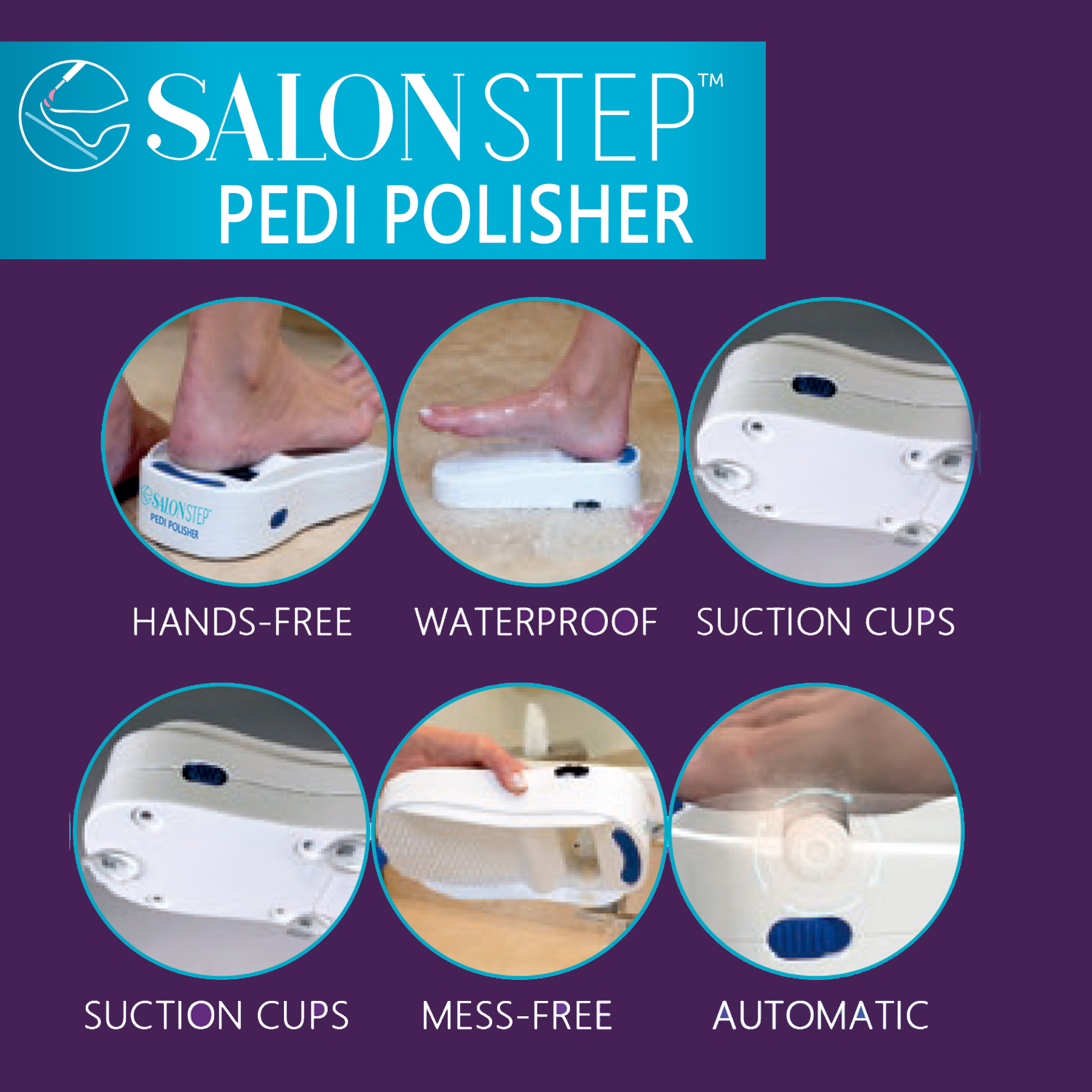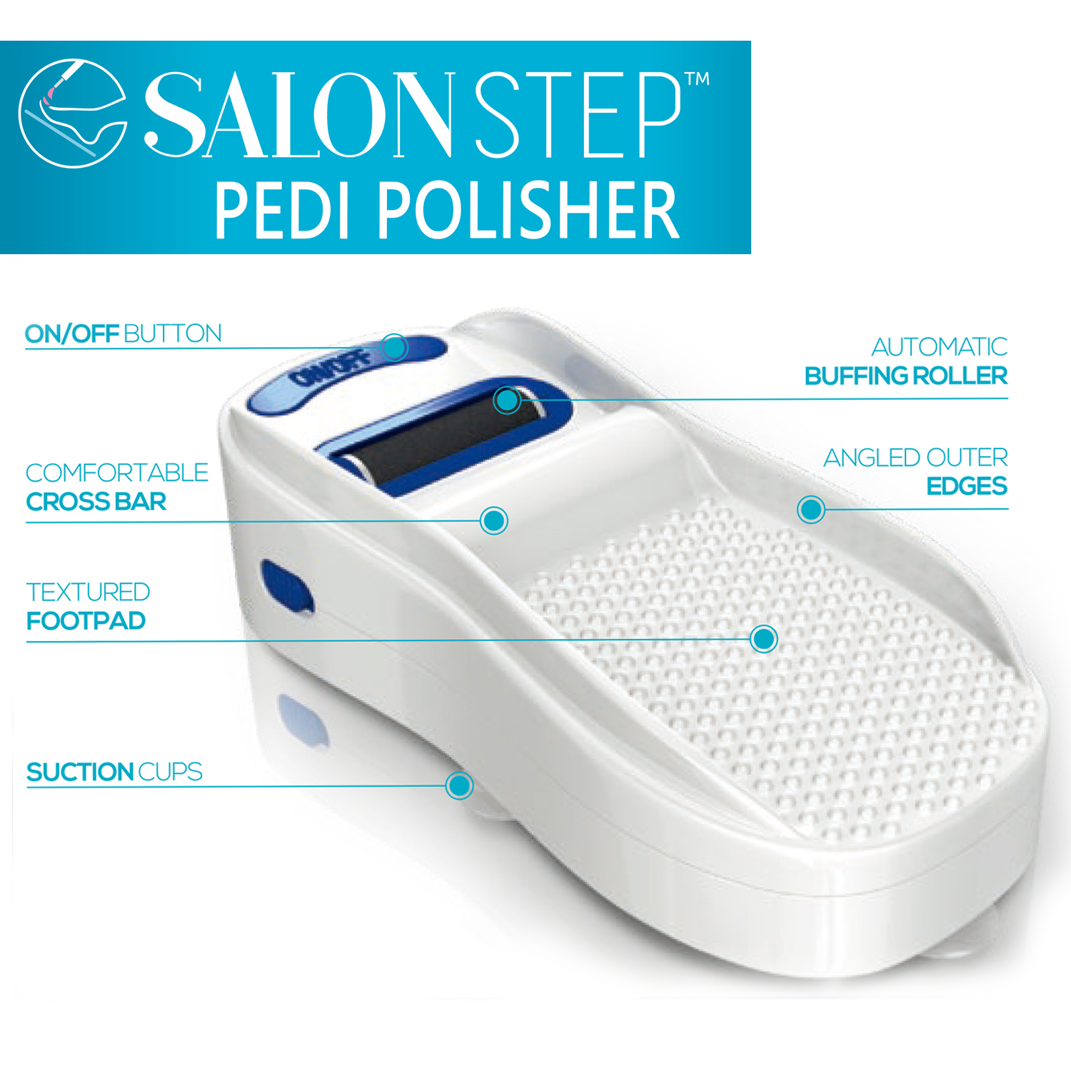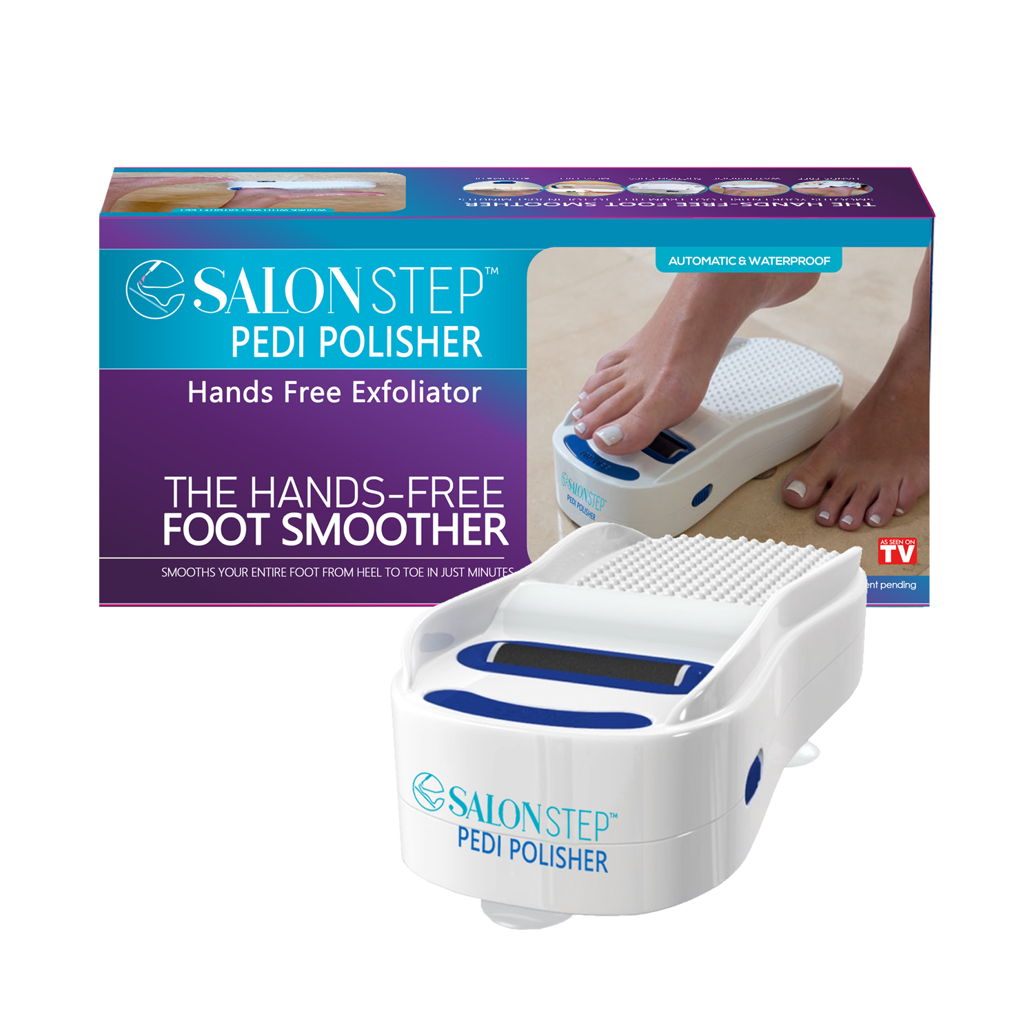 Tap it on, rest your foot, and let the Salon Step Pedi Polisher’s powerful rotating buffer gently smooth away dry, rough skin.